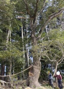 建物も近く、人や車の往来もある場所で、自由な方向へ伐り倒すということができません。